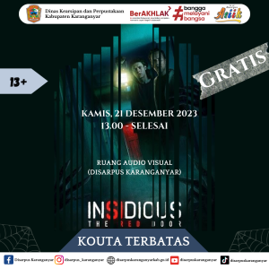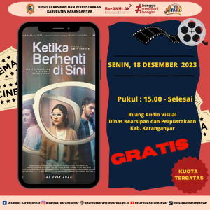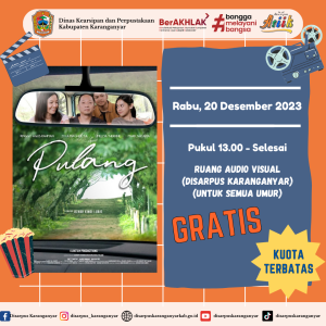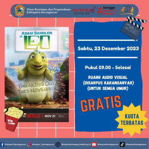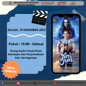 Dinas Kearsipan dan Perpustakaan (Disarpus) Kabupaten Karanganyar menyediakan layanan Nonton Film Bareng di momen hari libur sekolah.. Layanan ini bertujuan untuk meningkatkan jumlah kunjungan perpustakaan dan menyediakan hiburan untuk para pengunjung, terutama masyarakat Kabupaten Karanganyar dalam mengisi waktu libur sekolah.